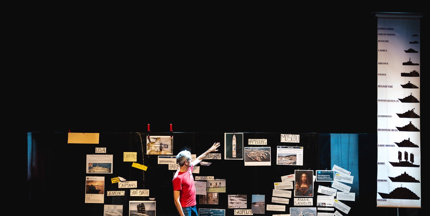 Un comédien, auteur, metteur en scène cherche à comprendre l’impact des yachts sur sa vie et sur la nôtre. Une enquête comme une obsession, pour trouver un chemin entre nous et cette élite économique. C’est d’abord une échelle de proportion : le superyacht Symphony, possédé par l’homme le plus riche de la planète, émet en un mois autant de CO2 que 1500 français de classe moyenne. Comment rendre sensible ce rapport de proportion qui nous échappe ?